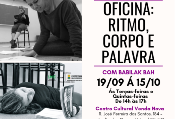 Atividade gratuita será realizada de 19 de setembro a 15 de outubro;  dinâmicas envolvendo ritmo, corpo e palavra,  noção de interface e jogos rítmicos serão trabalhados na oficina   A 'Oficina: 'Ritmo... Leia mais...